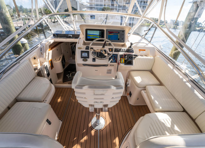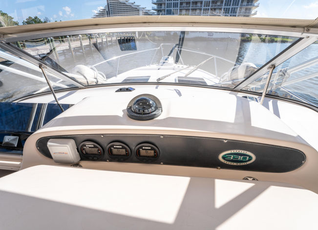 Lots to love about this 2005 Grady-White 330 Express, including it's 2017 Yamaha F300s with 525 operating hours. This Grady is built to tackle the Gulf and overnight offshore trips are welcomed. If you haven't captained a boat via a center helm like this one, you're in for a treat. For true offshore anglers, you won't find a more efficient layout and cockpit...her livewell is massive…